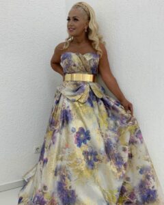 Këtë herë, derisa pozon në një dasëm ajo shkëlqen me fustanin e bukur që ka veshur.