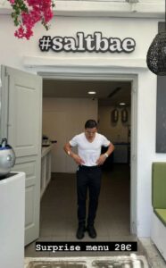 Kuzhinieri i famshëm turk, Nusret, i njohur ndryshe si Salt Bae ka çelur sezonin e tij veror në ishullin turistik luksoz Mykonos.