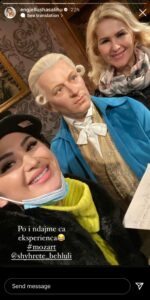 Atje, këngëtarja ka pozuar me figurën prej dylli të Mozartit dhe duket mjaftë e lumtur për këtë gjë, shkruan “Kosovarja”.