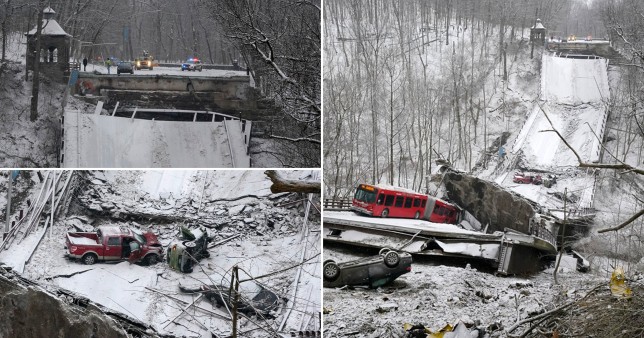 Fotot e rrënojave tregojnë të paktën një automjet, që duket të jetë një autobus, i varur në buzë të një pjese të urës. Një erë e fortë e gazit natyror përshkoi zonën, tha Siguria Publike e Pittsburgh në një mesazh në Twitter, duke u kërkuar banorëve të shmangin zonën.